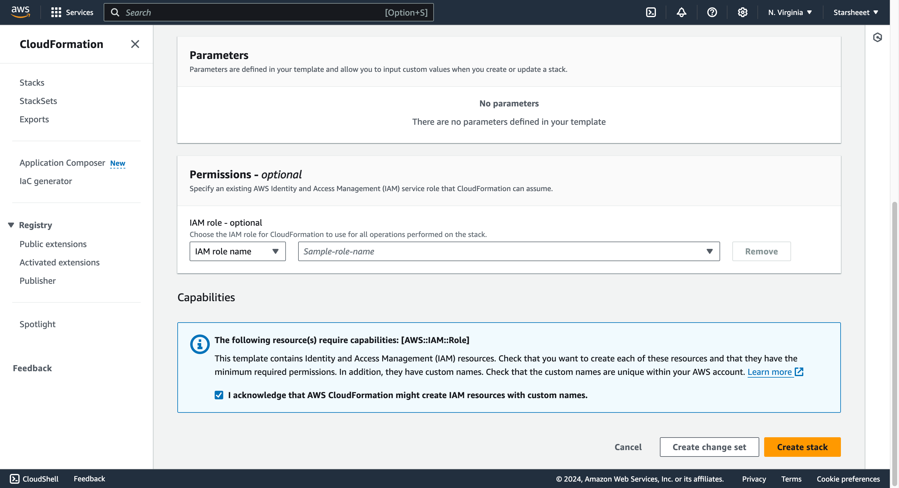Acknowledge that you understand the stack will create an IAM Role